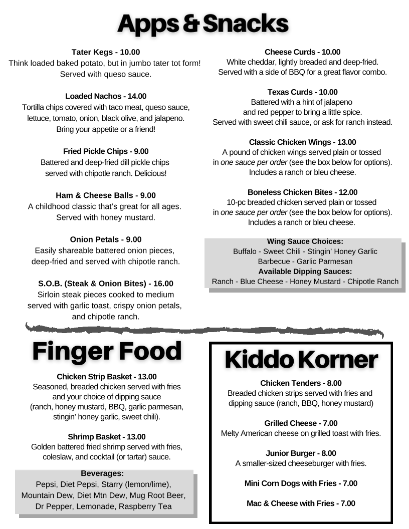 If you're ever in Wadena, make sure to check out the Iron Corral Menu at 21 Aldrich Ave SE. This spot is a true gem, offering a relaxed atmosphere perfect for a meal that feels both hearty and satisfying. The menu is packed with comforting favorites, from savory steaks to mouthwatering burgers that make every bite feel like a treat. You’ll find a variety of flavors, with options for every kind of craving, whether you're in the mood for something light or a more substantial dish. Each dish is crafted to hit just the right spot, making it easy to see why the Iron Corral is such a local favorite. Whether you’re dining with friends or grabbing a quick bite on your own, there’s something here for everyone.